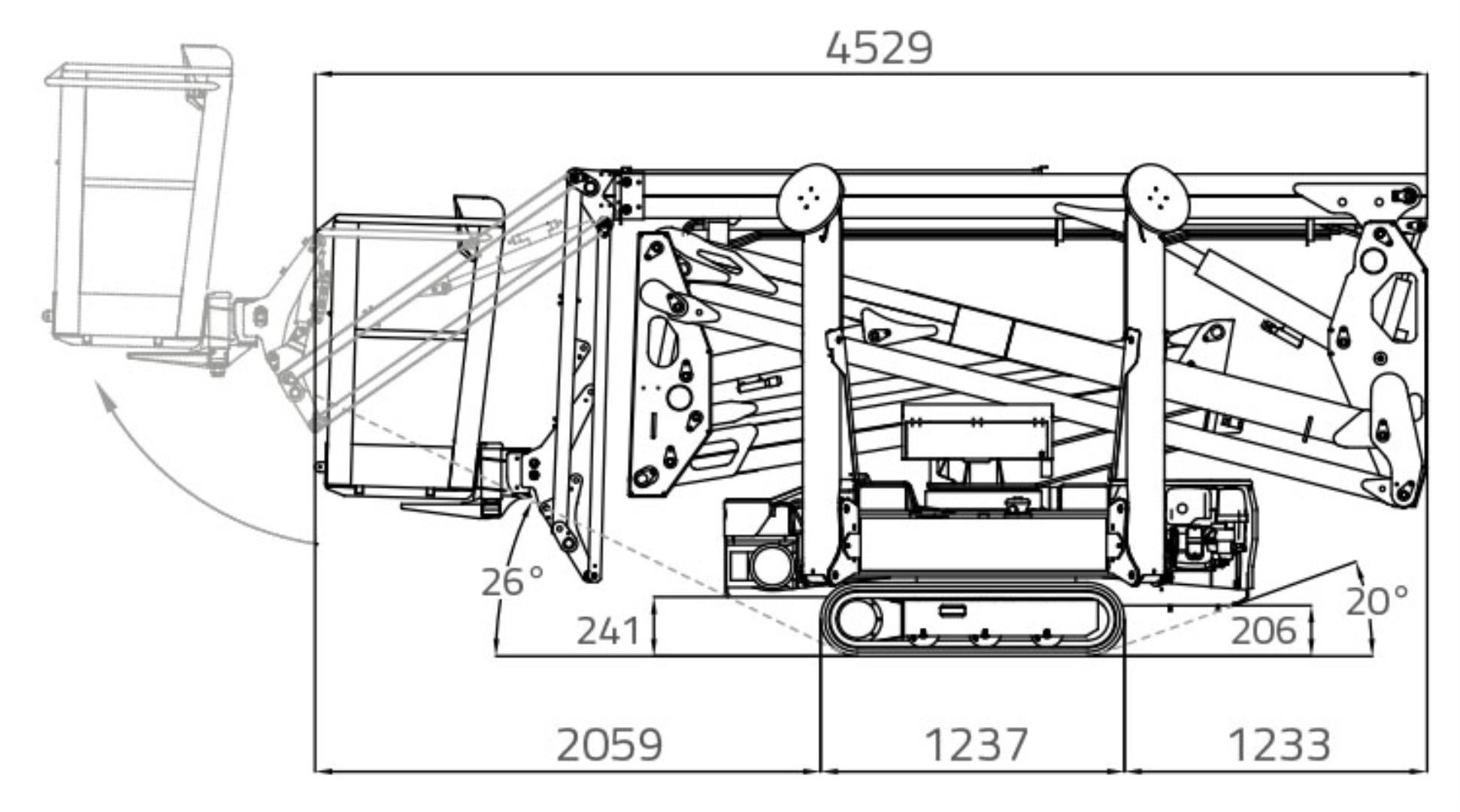 Werkdiagram Hinowa Lightlift 20.10 spinhoogwerker rupsen 20 meter