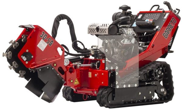 Om boomstronken in en boven de grond weg te frezen. Vermaalt de stronk en de wortels tot houtspaanders. Gemakkelijk te verplaatsen op een moeilijk terrein met de hydraulisch aangedreven rupsbanden.