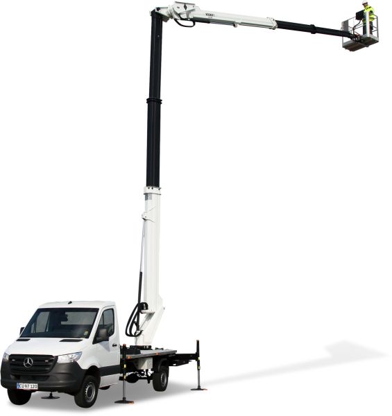 Deze kniktelescoophoogwerker op vrachtwagen van 24 meter is een compacte en wendbare autohoogwerker die uitzonderlijke prestaties levert in krappe ruimtes. Dankzij de werkhoogte van 24,2 meter en de maximale reikwijdte van 12,5 meter, is deze hoogwerker perfect voor werkzaamheden boven obstakels zoals daken, parkeerplaatsen of bomen.