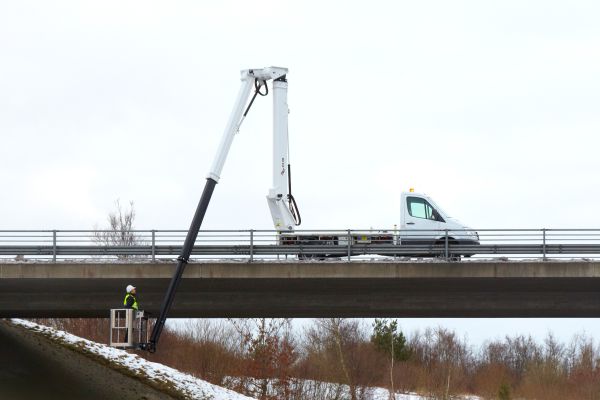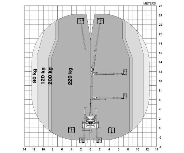 Zelfs op 11 meter hoogte behoudt hij zijn maximale zijdelings bereik – ideaal voor installaties, onderhoud of inspecties op moeilijk toegankelijke plaatsen.