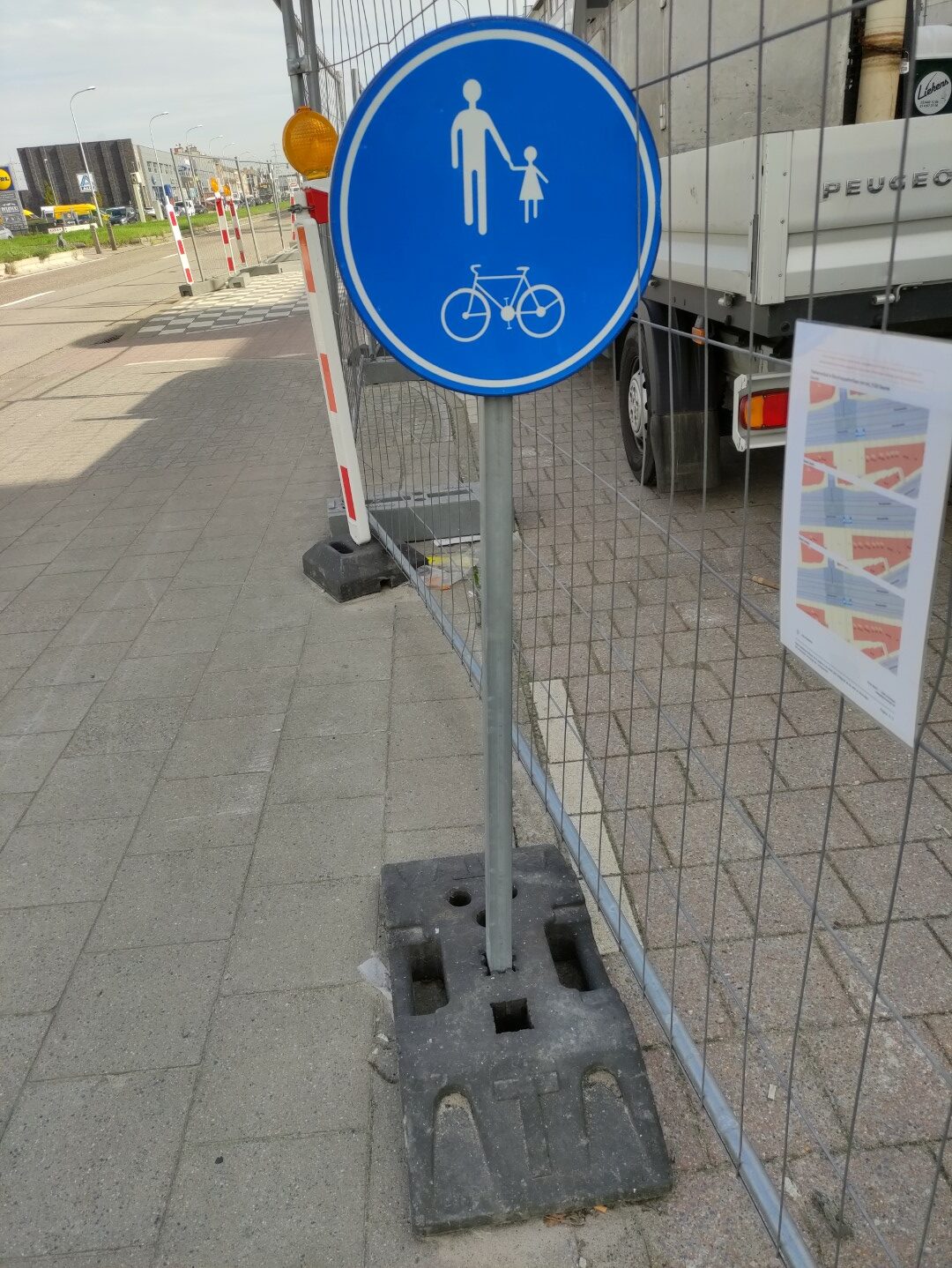 Dit verkeersbord voor aangeven van voorbehoud voor fietsers en voetgangers.