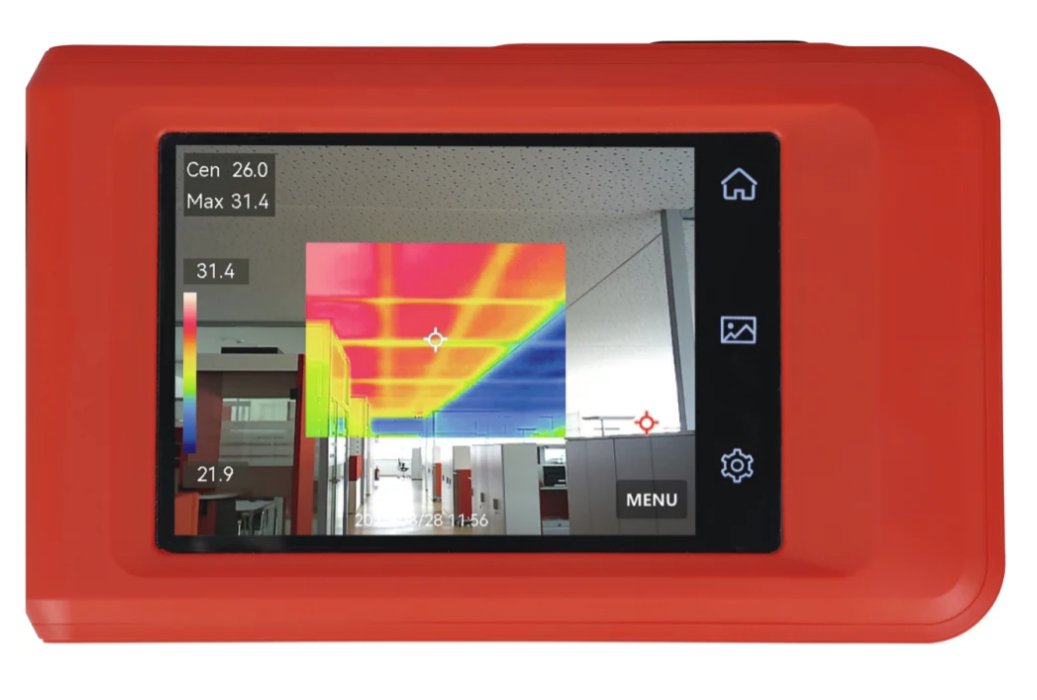 Deze warmtebeeldcamera is een professionele infraroodcamera met hoge resolutie voor nauwkeurige thermische inspecties. Dankzij de instelbare standen wissel je eenvoudig tussen thermisch en optisch beeld, zodat warmteverliezen, lekken en storingen snel zichtbaar worden. Met een gevoeligheid van minder dan 40 mK en een temperatuurbereik van -20°C tot 400°C detecteert deze warmtebeeldcamera zelfs kleine temperatuurverschillen. Het vloeiende live beeld, intern geheugen voor beeldopslag en een gebruiksduur tot 4 uur per batterijlading maken deze camera ideaal voor langere klantbezoeken en professioneel gebruik op de werf of in gebouwen.